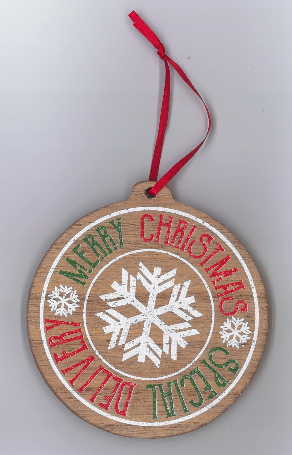 Distressed Brown Merry Special Delivery Round 4.25 x 4 MDF Decorative Hanging Ornament by Dicksons